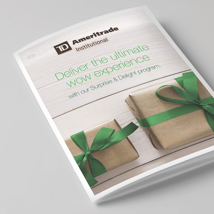 Sales recognition program Acknowledging a birthday, engagement, or other milestone helps build stronger relationships. This program, a TD Ameritrade Institutional first, makes it super easy for the sales team to wow Registered Investment Advisors with handpicked gifts and custom greeting cards. After all, who doesn't like to be surprised? And delighted?
